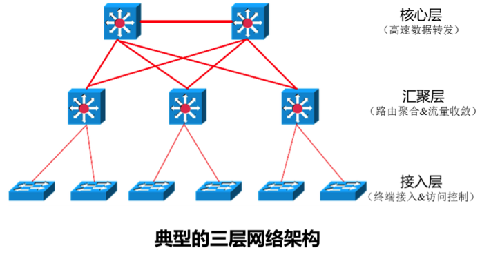 傳統(tǒng)的企業(yè)網(wǎng)絡(luò)往往采用三層架構(gòu)組網(wǎng)結(jié)構(gòu):